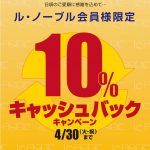毎回大人気の【会員様限定10%キャッシュバックキャンペーン】が
