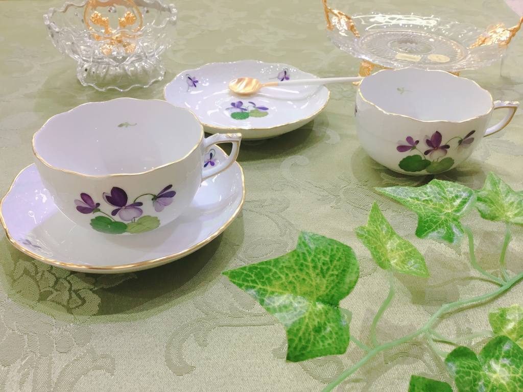 ヘレンド(ハンガリー) バイオレット(ゴールド)ペア ティーセット