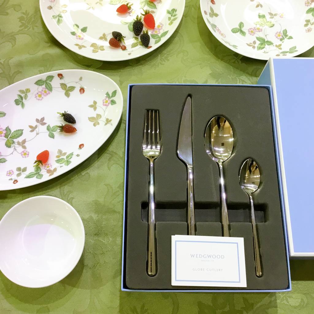 wedgwoodの刻印のはいった、シンプルでエレガントなフォルムのカトラリーセット。
