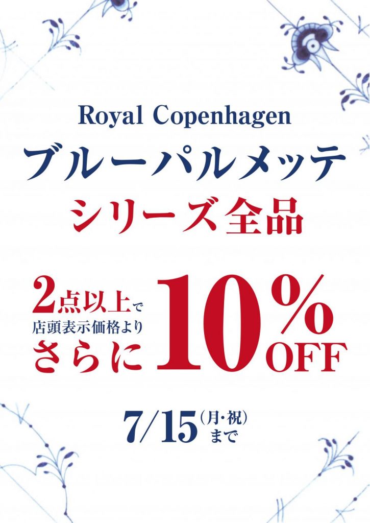 今回は人気ブランド、ロイヤルコペンハーゲンの7/15までのキャンペーンをご案内いたします♪