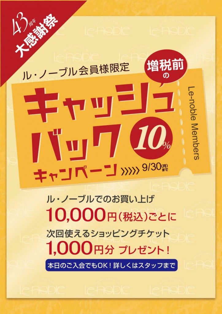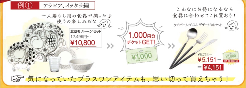 ご購入金額 税込10,000円ごとに、次回使用できる1,000円分のチケットをプレゼント!