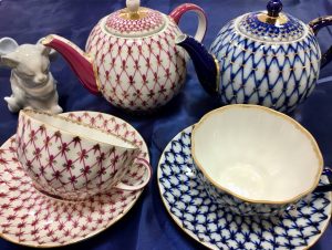 コバルトネット … コバルトの網目模様に金の美しい装飾が特徴の「コバルトネット」シリーズは、女帝エカテリーナ2世に献上されたディナーセットを基に制作されました。そのユニークで上品なスタイルは世界中で高く評価されており、1958年にはブリュッセル万国博覧会にてグランプリを受賞しました。