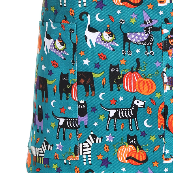 ガイコツや包帯姿の動物たちがユーモラスに描かれており、何処か懐かしさを感じさせる優しいプリントが魅力的です。