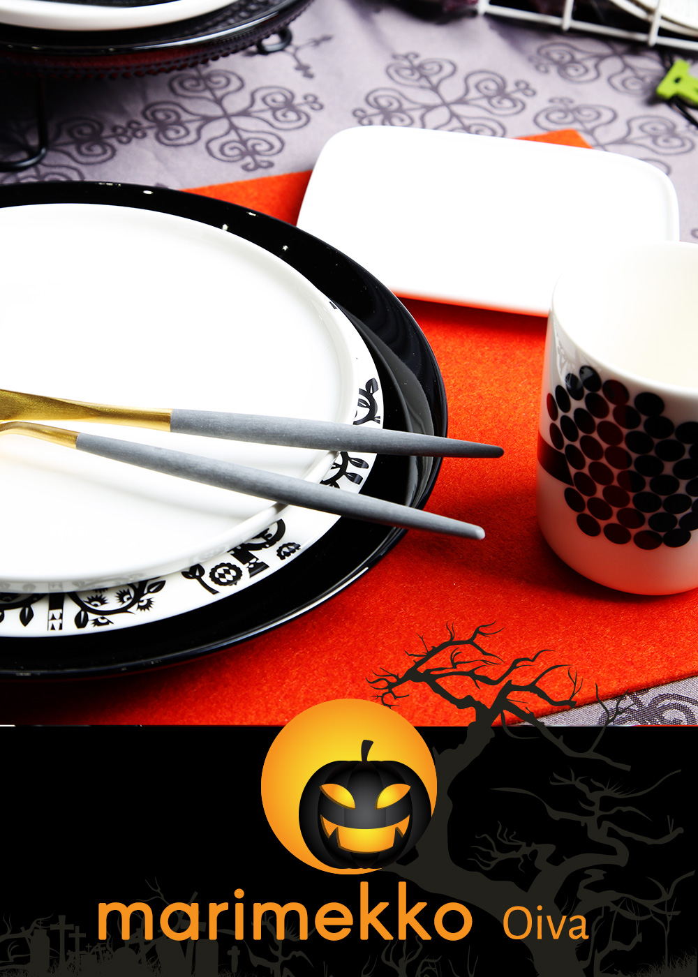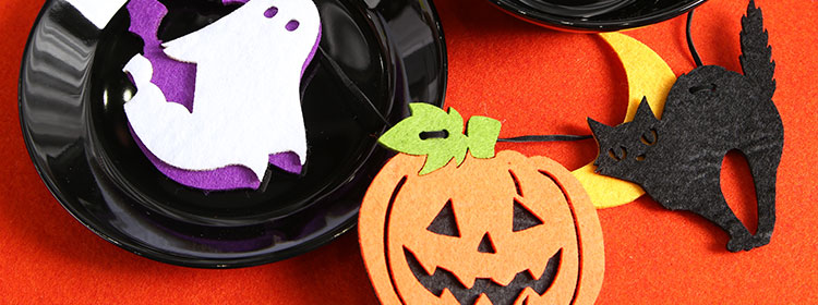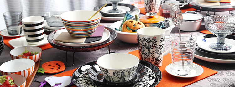いつもの食器も、オレンジ×黒のハロウィンカラーの組み合わせに可愛い小物を合わせるだけで、すっかりハロウィンの雰囲気を演出することができますよ♪