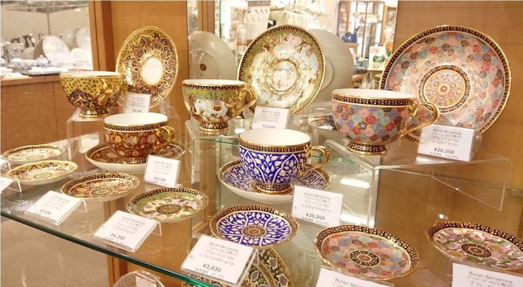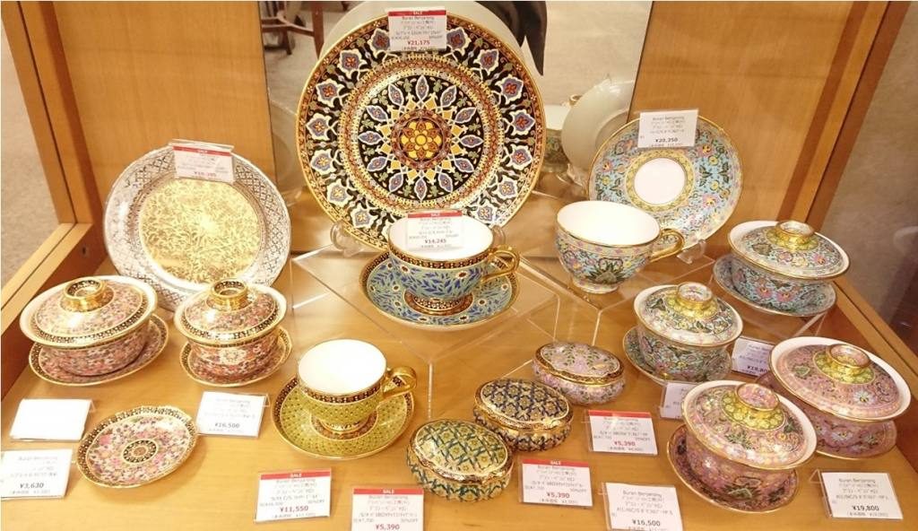 当店4階にてご覧いただけますタイの伝統工芸品、ベンジャロン焼。