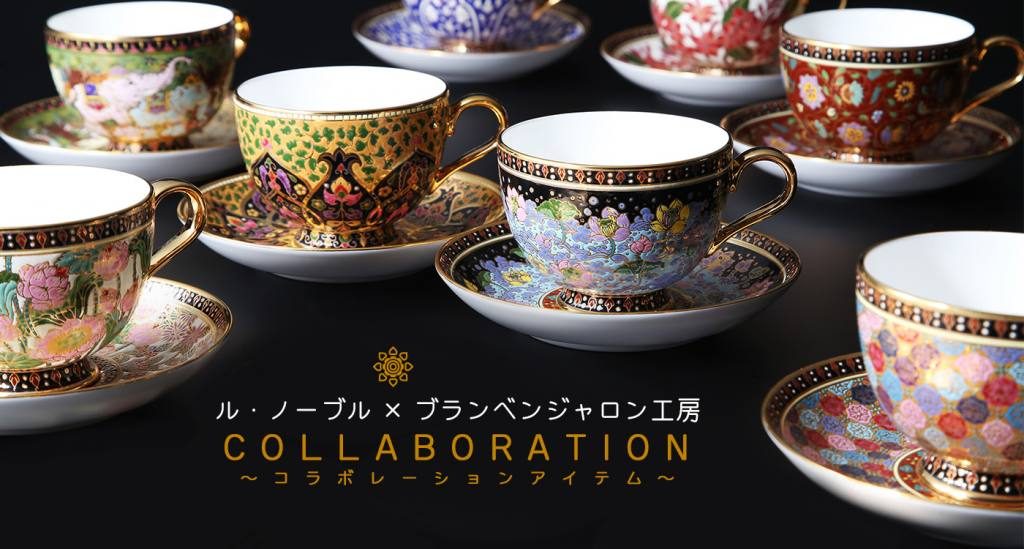 ブラン・ベンジャロン工房が有する数百ものパターンから、ル・ノーブルのスタッフが厳選した9柄で、ティーC/Sとミニプレートを制作していただきました。鮮やかなベンジャロンの色彩と繊細な装飾技術によって完成した華やかなベンジャロン焼の品々をぜひ店頭でご覧くださいませ ❁