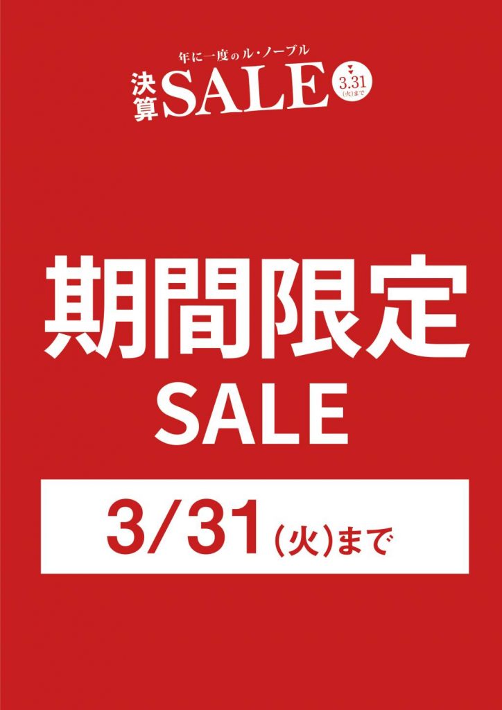 只今ル・ノーブルでは決算セールを実施中です。本日3/15からは衝撃特価と期間限定SALEの第3弾がスタート!今回でラストになりますので、ぜひぜひチェックしてください^^