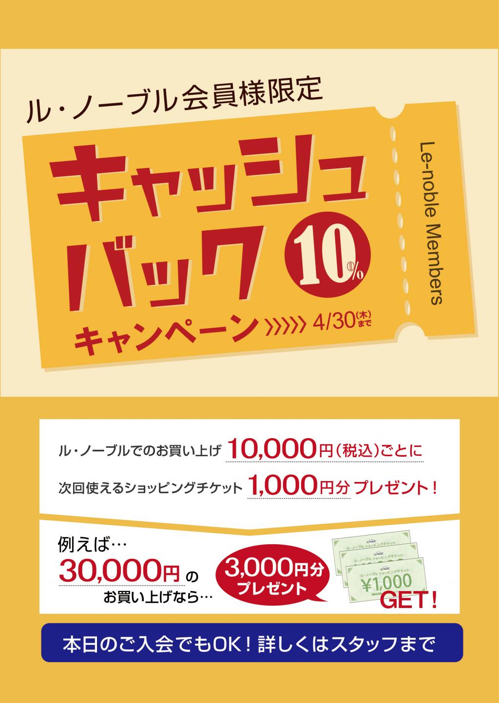 そして更に10,000円お買い上げごとに1,000円のチケットバックがございます。