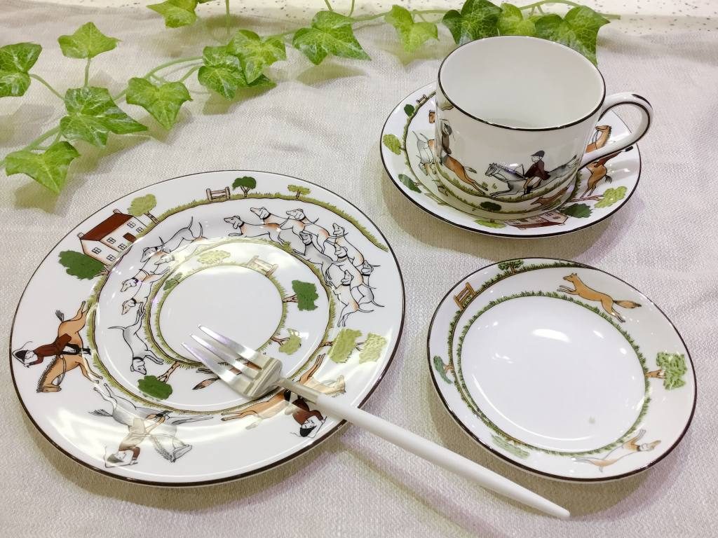イギリスの田舎の風景の中で獲物を追いかける狩人と猟犬を描いたシリーズ。少女が描いたクレヨン画からヒントを得てデザインしたそうです。入荷数が限られているため欠品することも多いこちらのシリーズが、今なら店頭でご覧いただけます。犬好きの方へのプレゼントにもおすすめです。