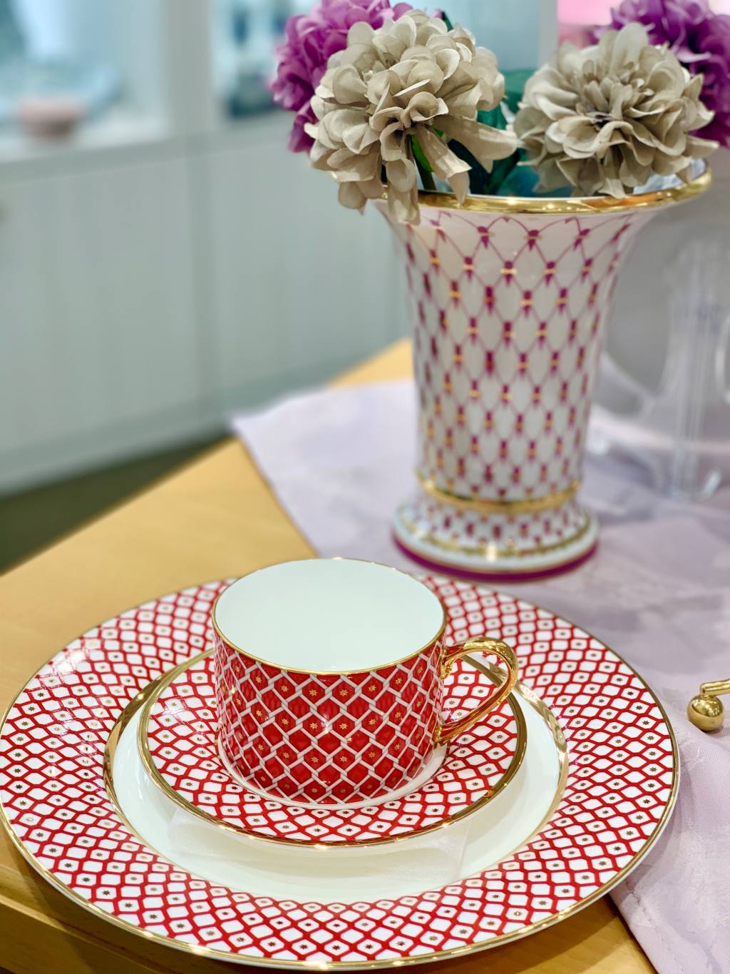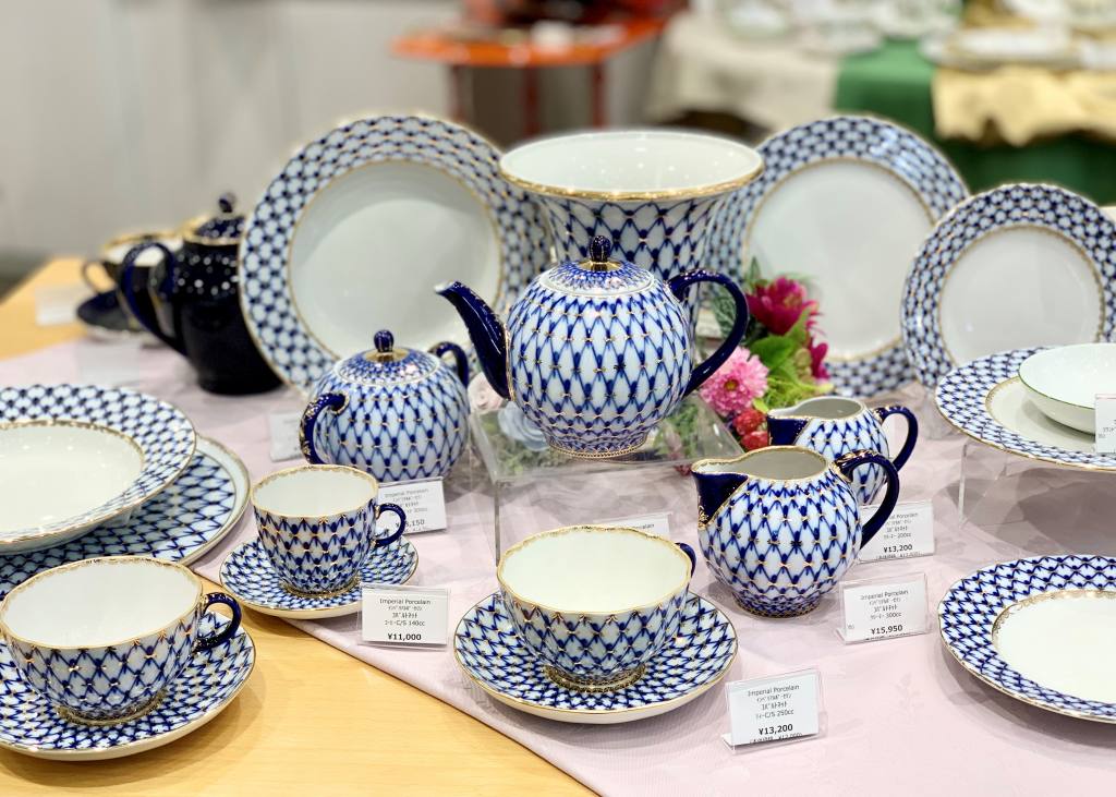 コバルトの網目模様に金の美しい装飾が特徴の「コバルトネット」シリーズは、女帝エカテリーナ2世に献上されたディナーセットを基に制作されました。