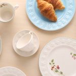 お手持ちのローズモーチーフのティーカップも邪魔せず、華やかに引き立ててくれます。