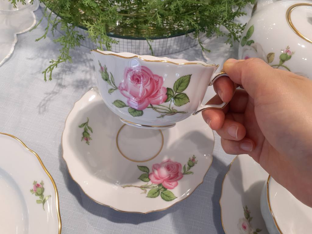 プティットローズシリーズは今ですと銀座店にはピンクとブルーがあり、ペアでギフトやご自宅用に揃えることが可能です。どちらも200ccサイズ。持ち手の淡いグリーンと口元の金彩も良いアクセントになっています。(※在庫に限りがございます。お電話やメール、LINE@にてお取り置きも承ります。)
