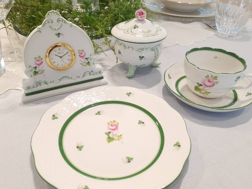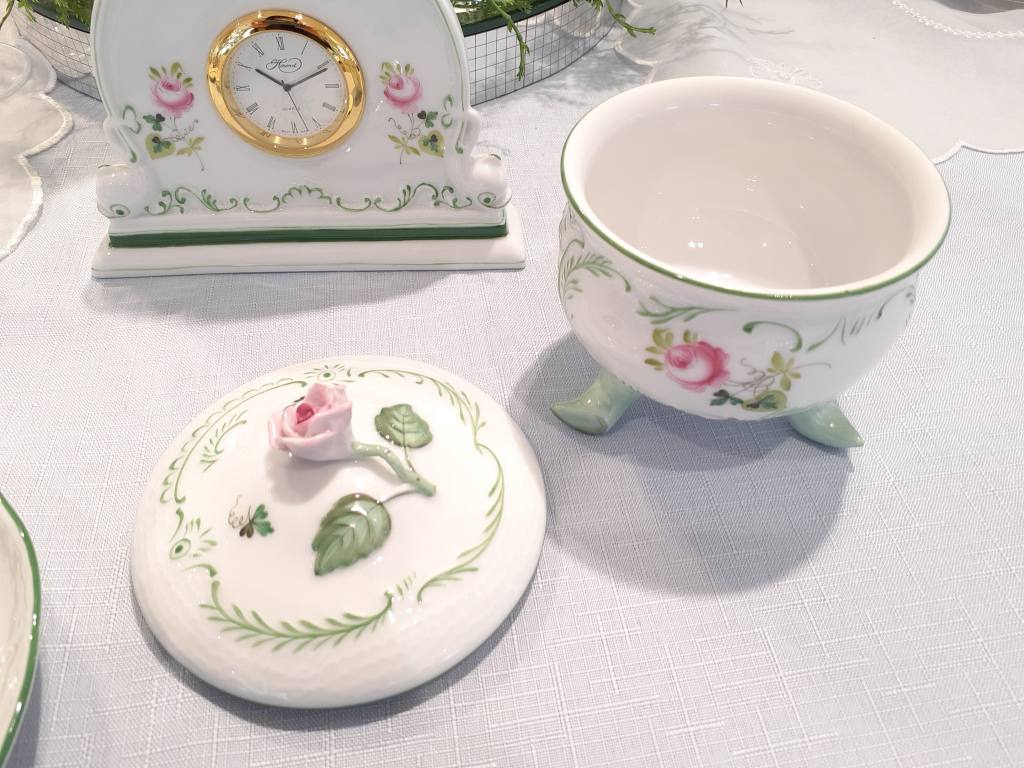 また、ウィーンのバラシリーズですと定番のカップ&ソーサーや19cmプレートの他にも、テーブルクロックや脚付きのラウンドボックスなどの珍しいアイテムもございます。