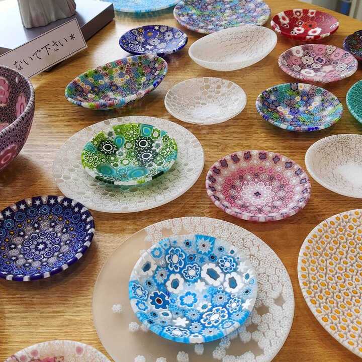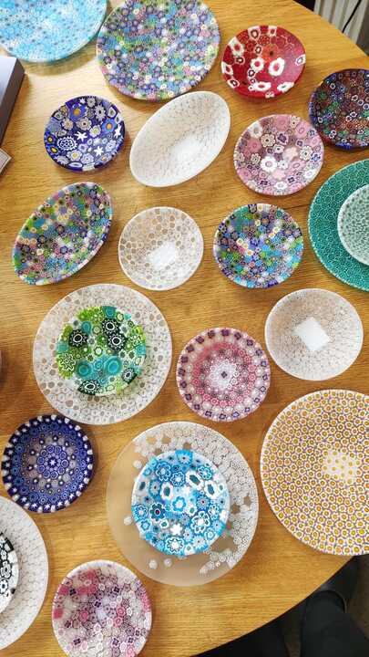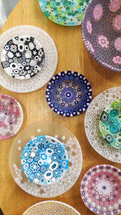 エルコーレモレッティ社のミレフィオーリ技法のお皿たち。