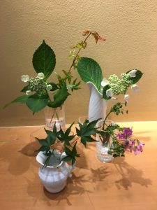 アジサイそのままの優しい色合いには、どんな花を入れても可愛く楽しめます。