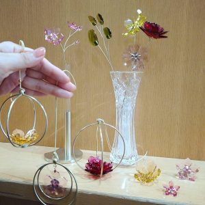 曇り空が続いて、晴れ間の待ち遠しい日でも 窓辺につるして光を集めてくれる小花のオーナメントも素敵!