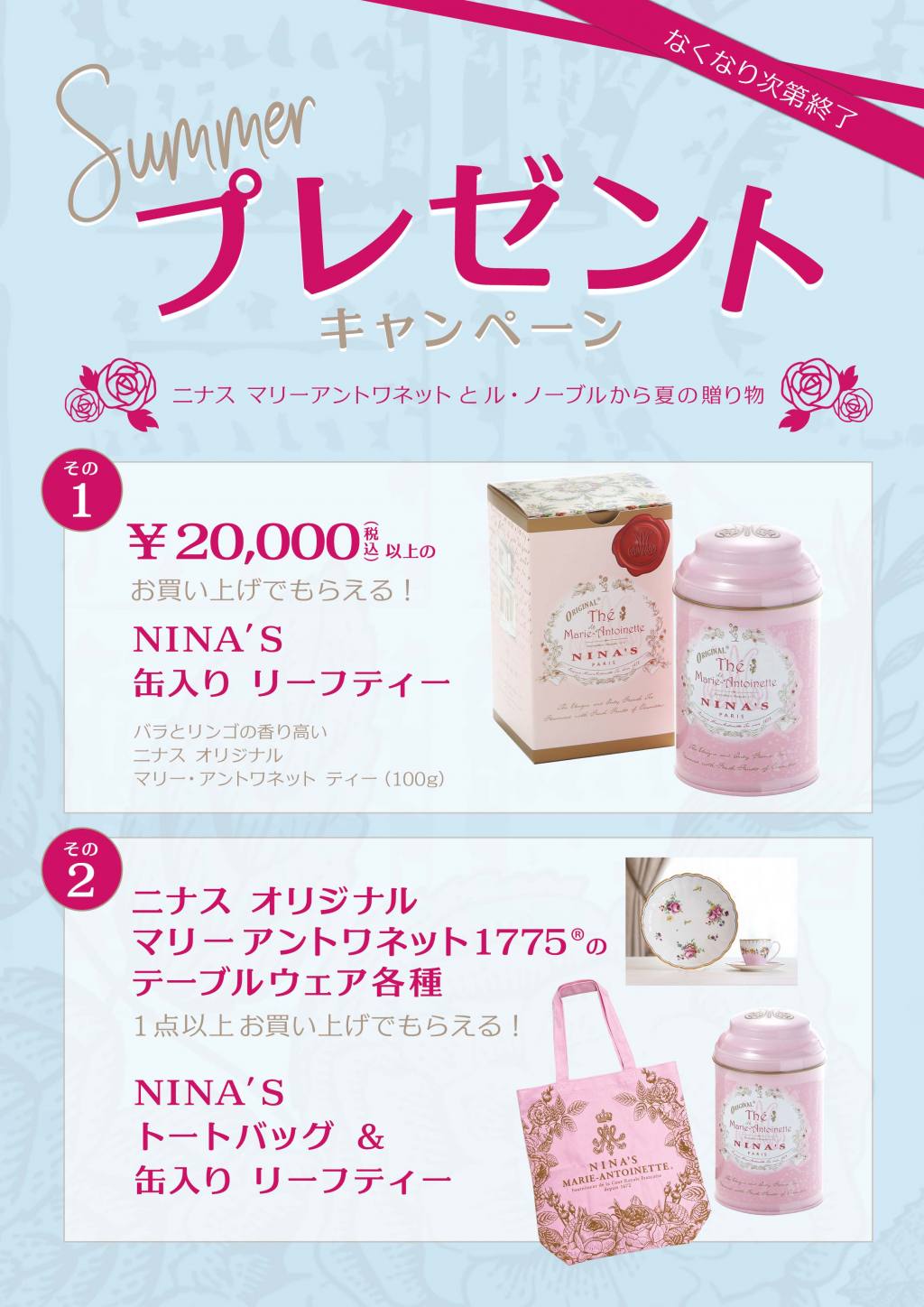 ①どのブランドでも合計2万円以上のお買い上げでニナスの紅茶を1缶プレゼント