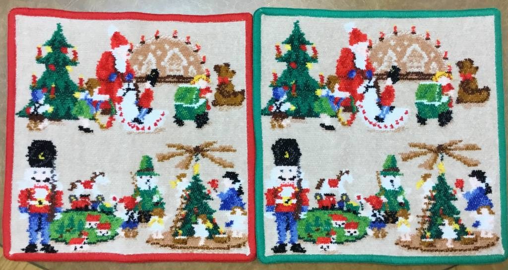 ハンドタオル25cm×25cm くるみ割り人形(左:レッド色・右:グリーン色)