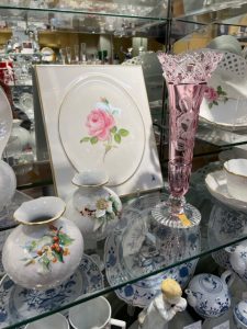 さて、今回のスタッフおすすめは、華やかなピンクのバラの陶板と優しいピンクのクリスタル一輪挿しの組み合わせです。
