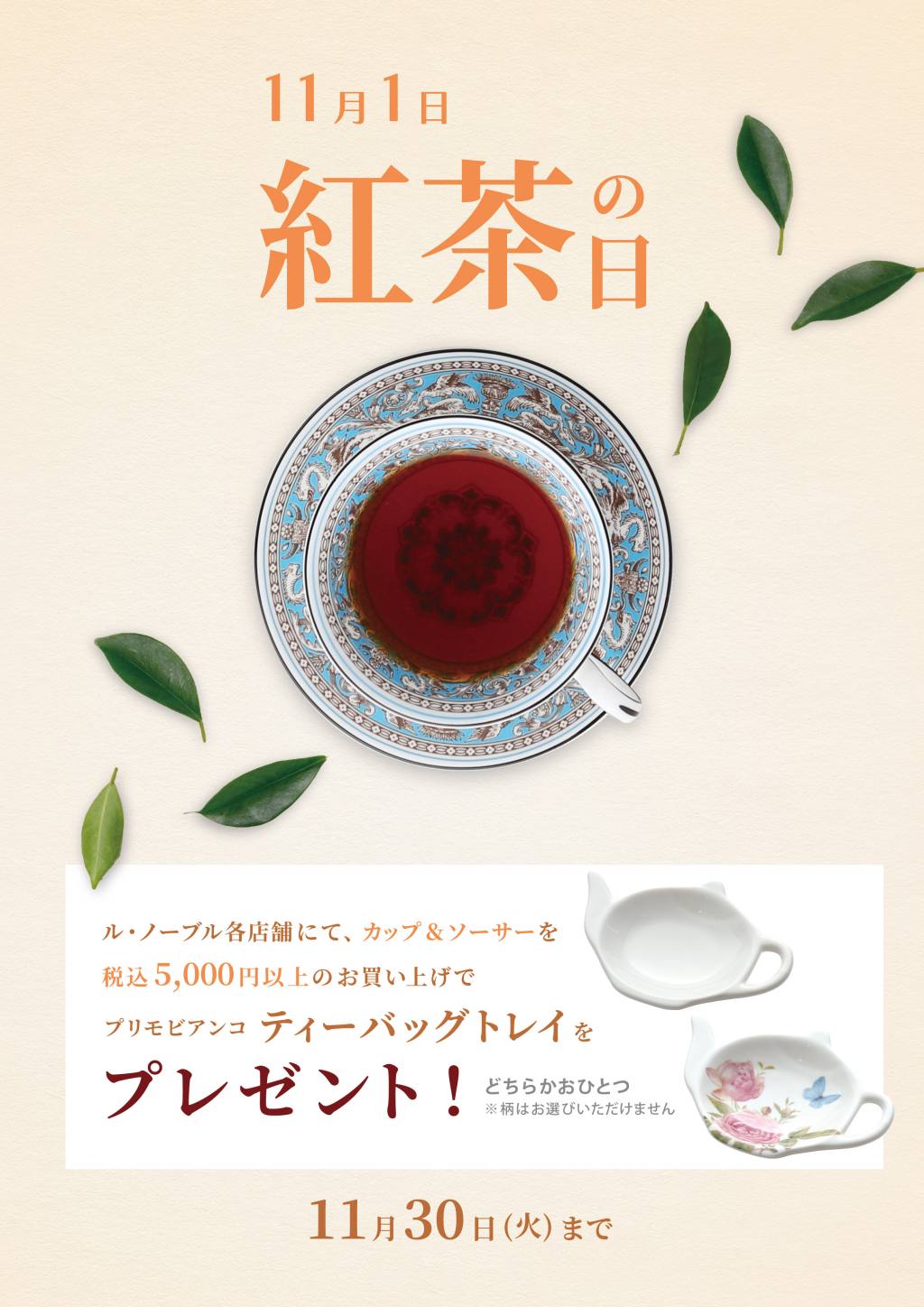 只今店頭にてカップ&ソーサーを税込5,000円以上お買い上げの方に、ル・ノーブルオリジナルのティーバッグトレイをプレゼントしております♩