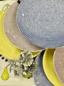 テーブルの上の黄色いビタミンカラーのお皿は、朝から元気と幸せを運んでくれます。