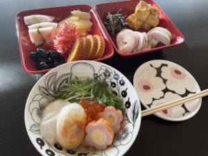 北欧の食器を使っておせち料理とお雑煮ですね😊