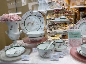 そんな寒さの中、街行く人々に「春は訪れる」メッセージを込めて、ヘレンドのバラでお出迎え🌹