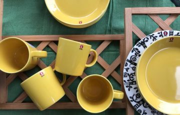 どのシリーズにも合わせやすいフェスティビティのお皿とマグは温かみのあるクィーンズウェアによる質感が特徴的。
