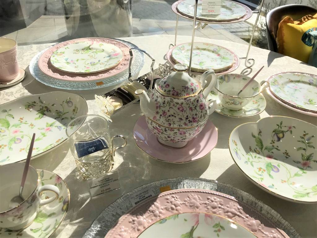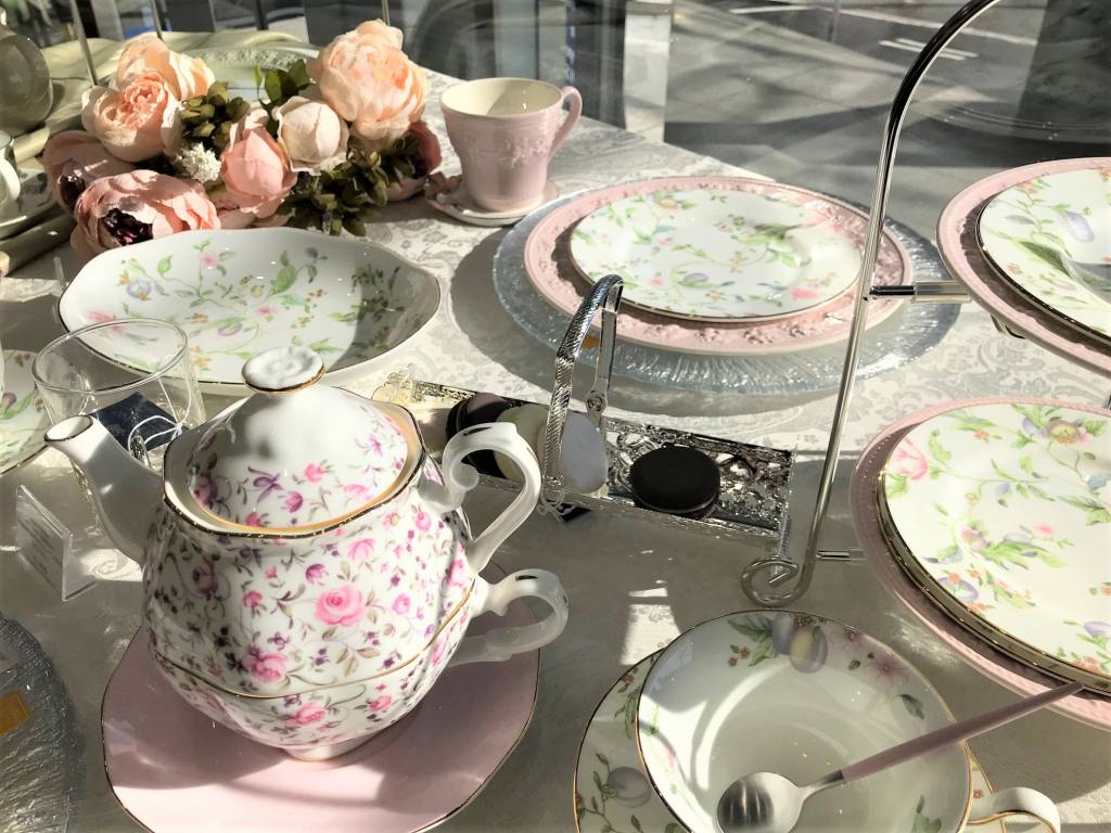 ちなみに少し目立っているティーフォーワン(一人用ポット)は、ロイヤルアルバートの商品“ローズコンフェッティ ”シリーズです💦
