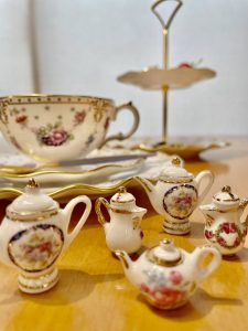 ポットは背の高いものでも3.5cmほど。ティーセットのカップは直径わずか1.8cm。