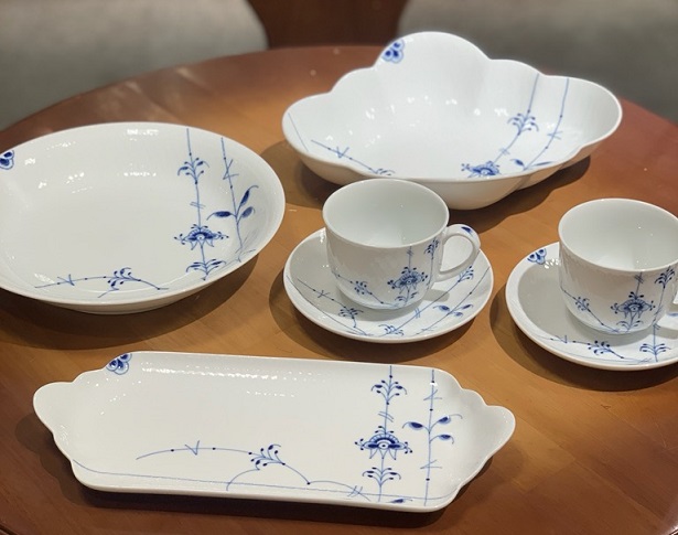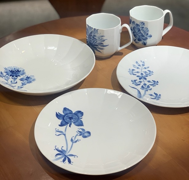 ブルーフラワーがモダンに調和した気品あるテーブルウェアです。