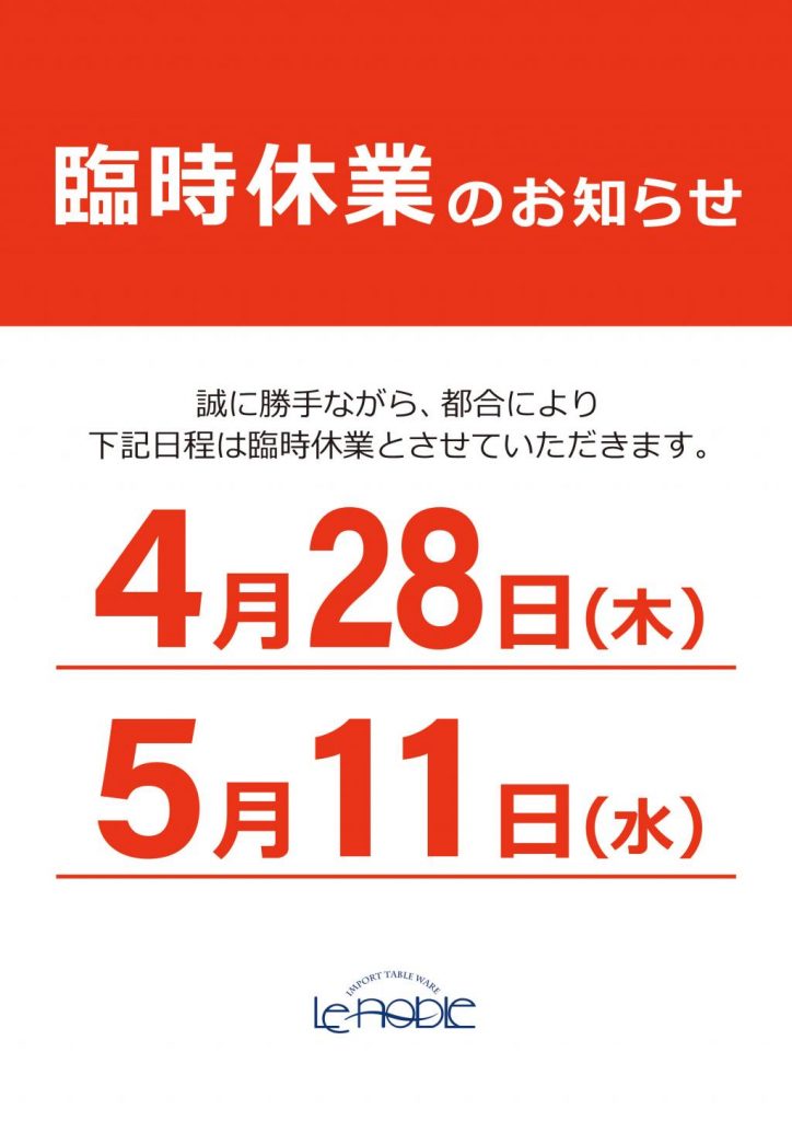 誠に勝手ながら、店内照明工事と都合により下記の2日間を終日休業とさせていただきます。