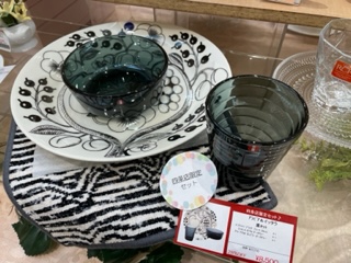 そしてグリーンの食器を集めたこちらのコーナーなど カラーごとのディスプレイを見て頂けます