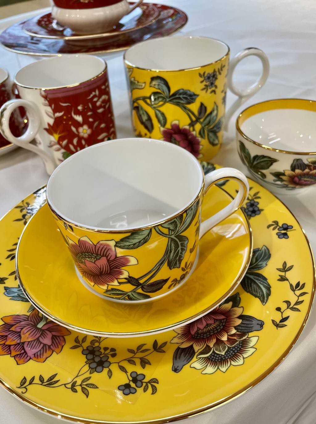 イエロートンキン・クリムゾンジュエル ティーカップ&ソーサー 各¥6,682 20cmプレート 各¥3,740