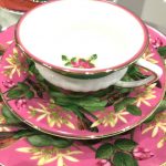 ボーンチャイナのカップやプレートにカラフルに表現されています。