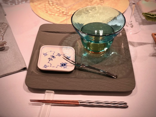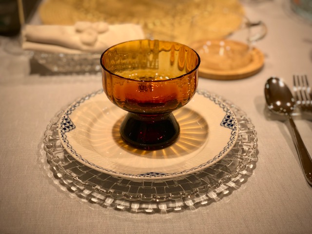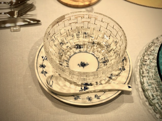 ↓ボヘミアシリーズのボウルのクリアの底がロイヤルコペンハーゲンのプレートの中心の円と