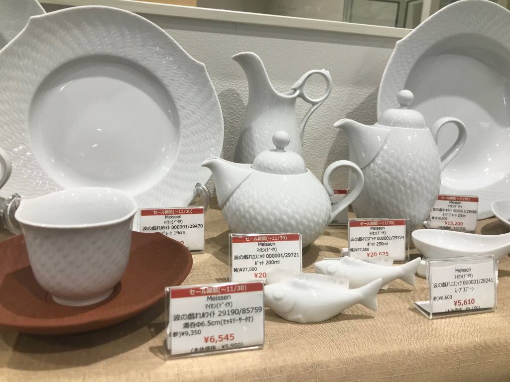 現代マイセンを代表する「波の戯れ」は、さざ波のようなレリーフがモダンなフォームに映えた「用の美」を感じさせるシリーズです。