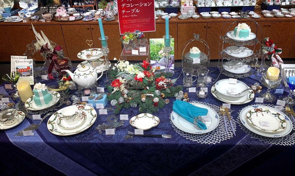 店内にてクリスマスのテーブルセッティングを展開中🎄