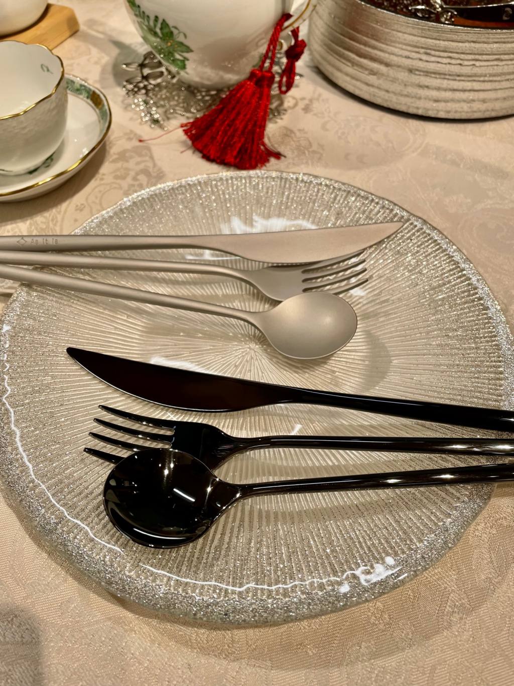 特にブラック/シルバーは色んな食器に合わせやすく好みも分かれにくいです。