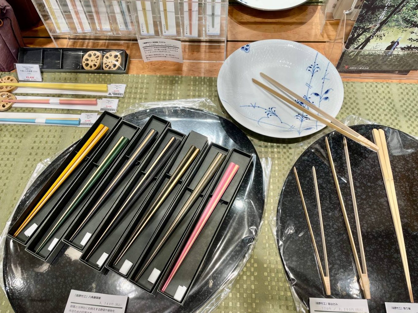 手前 八角御園箸 ¥3,740 奥 四角箸パステル ¥1,628~ 箔はさみ ¥770~¥2,200