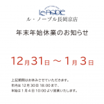 ル・ノーブル梅田ディアモール店は、本日12月30日(金)が年内最終営業日となります。