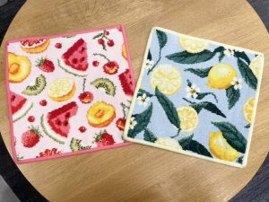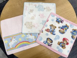 店頭では25×25㎝と30×30㎝がございますが本日は25×25㎝のハンドタオルのご紹介です😊