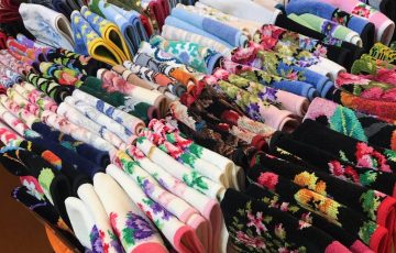 その白地のキャンバスに鮮やかに描かれるイギリスの伝統的なデザインの商品の数々は