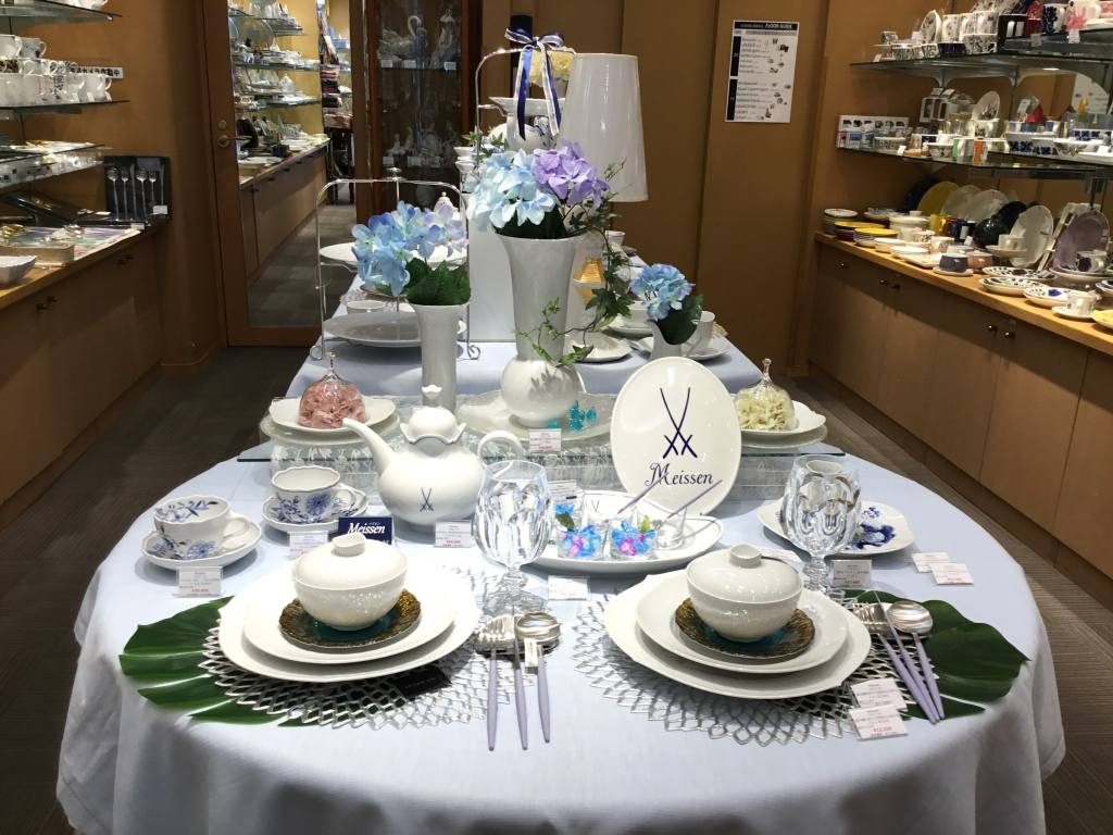 ベースにはあじさいの花をアレンジし6月のテーブルに。