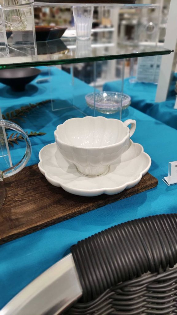 ひらひらのティーカップ&ソーサー。厚みはありますが持ち手のバランスがよく持ちやすいです。