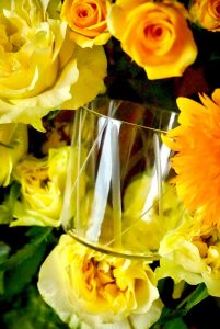 今回は、ル・ノーブルのオリジナルグラス「KIRI-KO」を使ってのアレンジメントです。KIRI-KO は、切子職人がひとつひとつ切子技法によりカットを施してあるので、それぞれが個性があります。ぜひお気に入りのグラスでのアレンジメントを楽しんでくださいね。