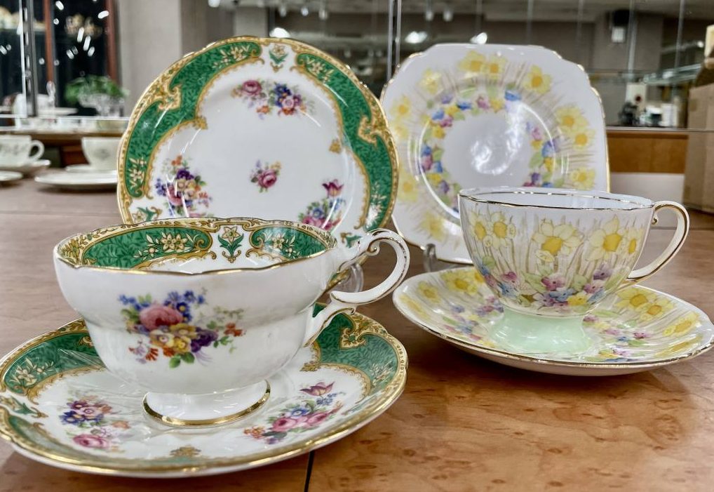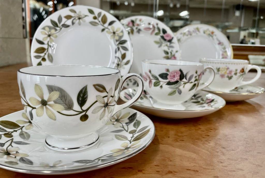 ざっくりお見せすると、こんな感じです。ウェッジウッド、ロイヤルアルバート、バーレイなど