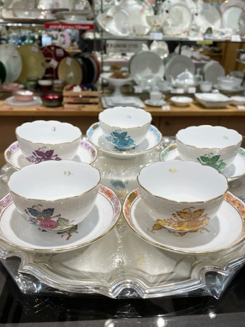 カップをお色違いで楽しめるのも、絵柄の種類の多い、ヘレンドならでは。 5色色違いや色違いペアなど お楽しみも色々です