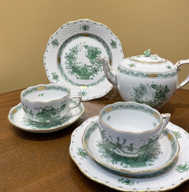 ヘレンド インドの華グリーン ティーセット (ティーポット800㏄ ティーカップ&ソーサー200ml 2点 プレート19cm 2点)