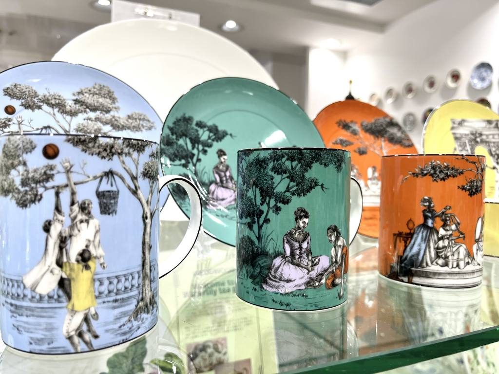 今回のコラボレーションにもその大胆かつ遊び心のあるカラフルなデザインがプレートなどのテーブルウェアやティーウェアに落としこまれています。
